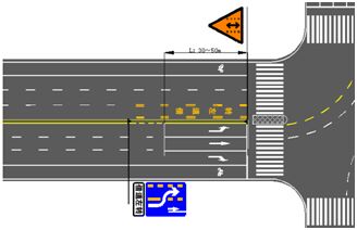 (1)進口道左轉車流較大,且發生溢出現象;路段多次出現時段性、方向性不均衡交通流時,才具備設置的需求條件;