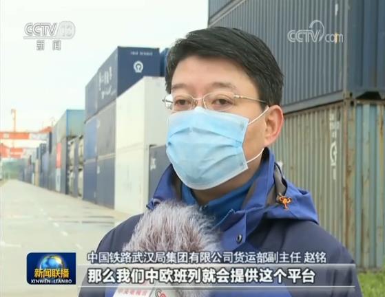 總臺央視記者 金珠:我現在是在中鐵聯集武漢中心站,這是自疫情防控以來從武漢開出的首趟中歐班列,它也標志著武漢的中歐班列恢復了常態化的運行。