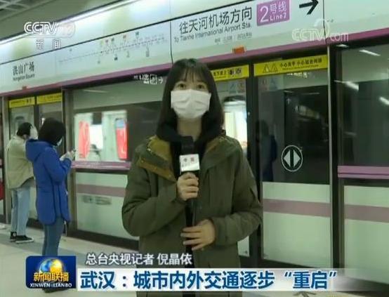 總臺央視記者 倪晶依:我現在是在武漢地鐵洪山廣場站。今天早上6:30,武漢部分軌道交通恢復運營。