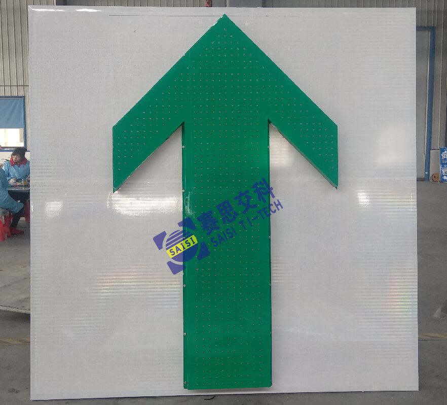 技術參數:尺寸2000mm*2000mm;白底、綠圖案、綠色LED管;LED點陣式主動發光標志;太陽能供電或外接市電。