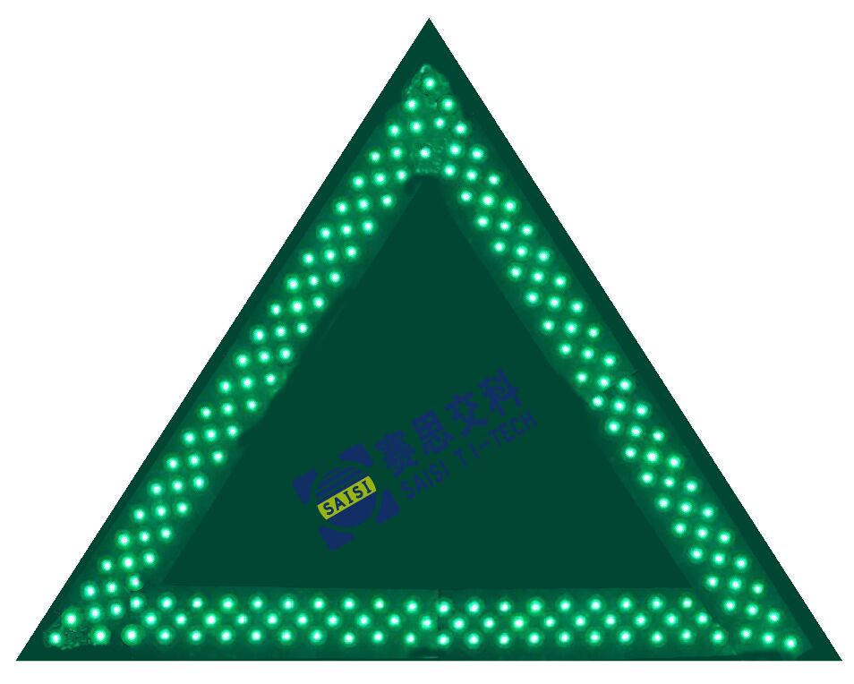 技術參數:三角2400mm;綠底、無圖案、綠色LED管;LED點陣式主動發光標志;太陽能供電或外接市電。