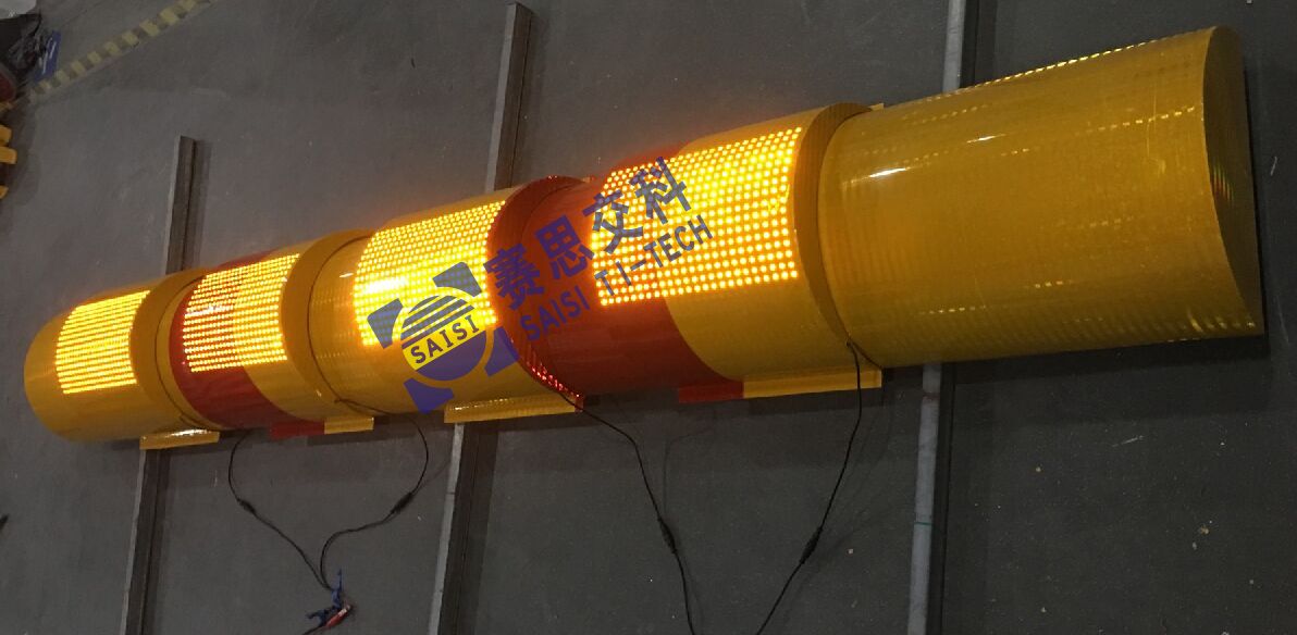 參考尺寸:4000mm*400mm;紅黃相間底膜,紅黃LED管;LED點陣式主動發光標志;太陽能供電或外接市電。