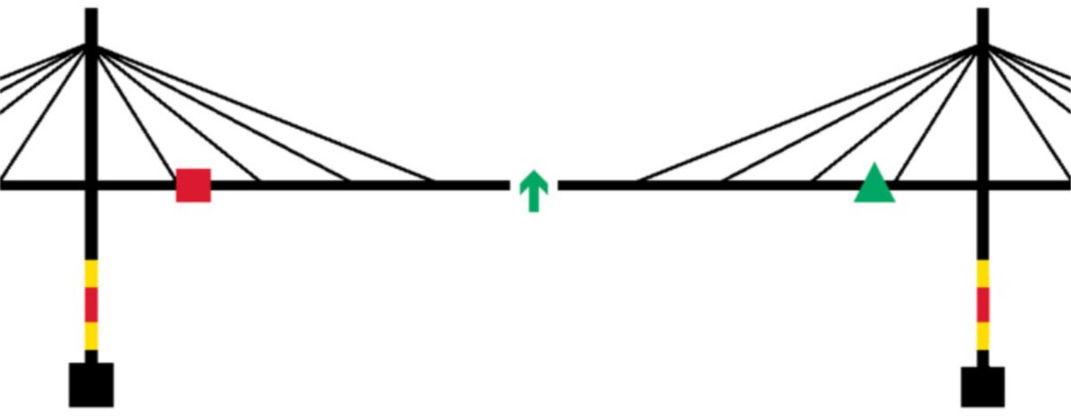 在國標《中國海區可航行水域橋梁助航標志》(GB24118-2009)中列出了兩種類型的通航橋孔:雙向通航橋孔和單向通航橋孔,并根據不同的通航橋孔給出了對應的設置標準。