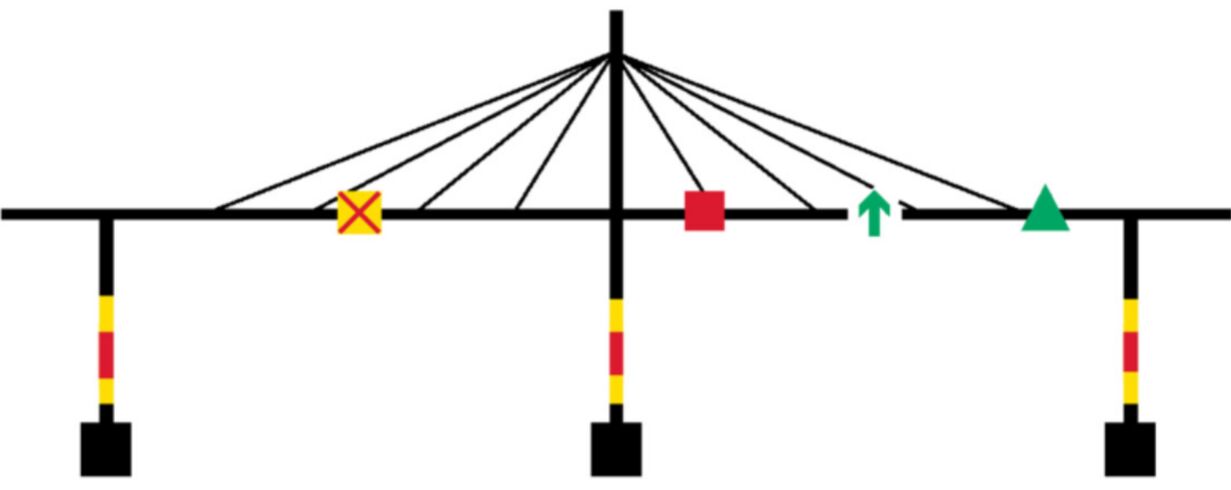 船舶在內河或海域中通行,在臨近跨河、跨海橋梁時,需要通過觀察橋梁上的助航標志,來判斷橋梁下方的通行航道定位,及時修正航行線路,所以設置于橋梁上的助航標志,對船舶準確、及時地把握前方橋梁信息顯得尤其重要。橋梁航道助航標志通常采用逆反射材料,船舶臨近時需要依賴射燈照射才能認知版面信息,在橋梁周圍光照環境不佳的夜晚或惡劣天氣,普通的反射型標志已不能滿足全天候的視認需求,現在普遍采用主動發光標志工藝,該標志不僅具備主動發光功能(不需射燈照射),同時兼具逆反射效果,被越來越多地應在橋梁航道助航上,極大地增強了助航標志的遠距離視認性、警示性、易捕捉性,大大提升了橋梁航道的安全性。