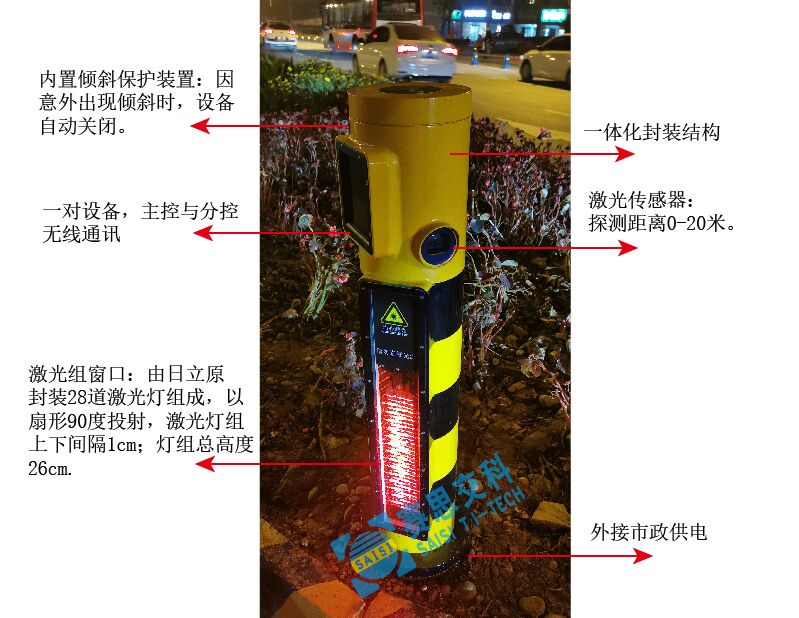 經(jīng)權(quán)威檢測(cè),智安樁的激光燈功率僅為舞臺(tái)燈的1/10。通過(guò)激光燈組以點(diǎn)帶面和特制光學(xué)透鏡的配合,激光線明亮柔和,在有效警示司機(jī)的同時(shí),避免對(duì)人眼造成傷害。此外,光線集中不擴(kuò)散、切面平整,光線保持在安全合理的位置,杜絕光線干擾和污染。
