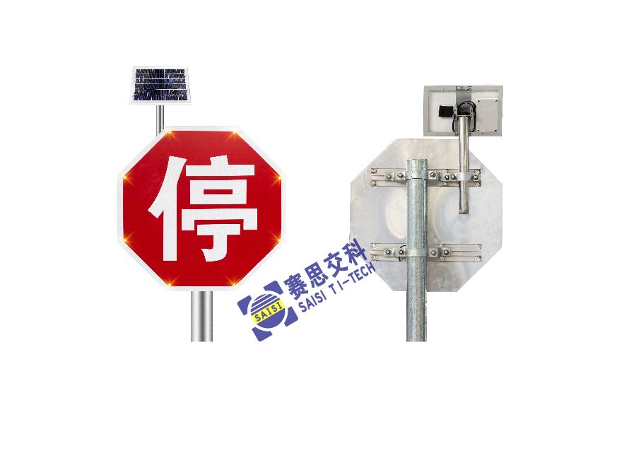 A)支線上設置減速讓行、或停車讓行標志,有條件可采用太陽能主動發光標志,或于標志上方配置太陽能爆閃警示燈。