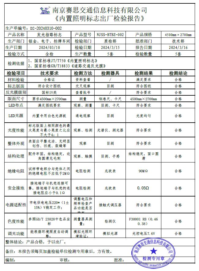 一塊完整的發(fā)光標(biāo)志牌生產(chǎn)技術(shù),涉及到:材料力學(xué)、結(jié)構(gòu)力學(xué)、光學(xué)、電子電路、太陽能供電系統(tǒng)、智能控制、數(shù)據(jù)通訊等眾多領(lǐng)域,任何一道工序的馬虎麻痹,都會導(dǎo)致標(biāo)志最終的質(zhì)量瑕疵,“將問題控制在出廠前!”這是我們賽思交科提出的生產(chǎn)管理口號,出廠前發(fā)現(xiàn)問題,能及時補救,設(shè)備資源、人力資源、技術(shù)資源都很完備,遠勝于出廠后才發(fā)現(xiàn)問題的茫然與手忙腳亂。“讓客戶放心、省心、安心!”這是我們賽思交科的服務(wù)宗旨,出廠前,對每一個細節(jié)的注重,就能省去客戶現(xiàn)場的很大麻煩。“我們比客戶更專業(yè)!我們比客戶更懂發(fā)光標(biāo)志!我們比客戶更了解發(fā)光標(biāo)志的內(nèi)部結(jié)構(gòu)!我們比客戶更具備解決問題的各種條件資源!”,消患于未然,我們賽思交科作為良心企業(yè),必須要高度重視檢查檢測工作!!出廠前,我們嚴(yán)格按照《檢查檢測作業(yè)指導(dǎo)流程》,做好以下檢查檢測工序:
