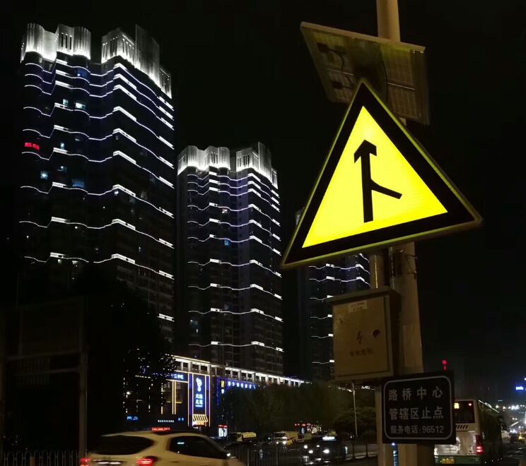 標志版面整體發光,對于禁令、警告類有紅、黃、黑等深色系列反光膜的,能通過版面中的白色透光膜來反襯圖案,標志整體發光面柔和,適合亮化、景觀等暗環境中的發光點綴。